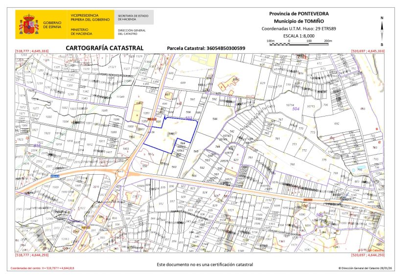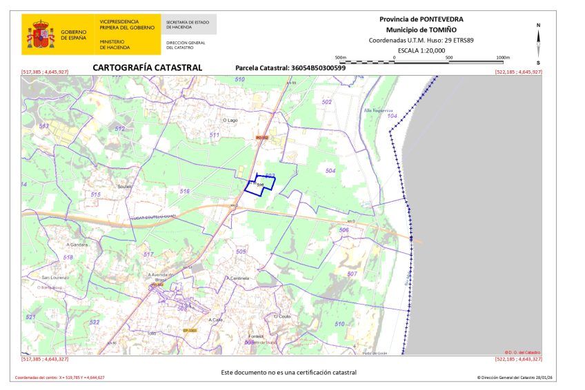 Finca en venta con referencia catastral: 36054B503005990000LM, ubicada en Goián-Tomiño (Pontevedra).