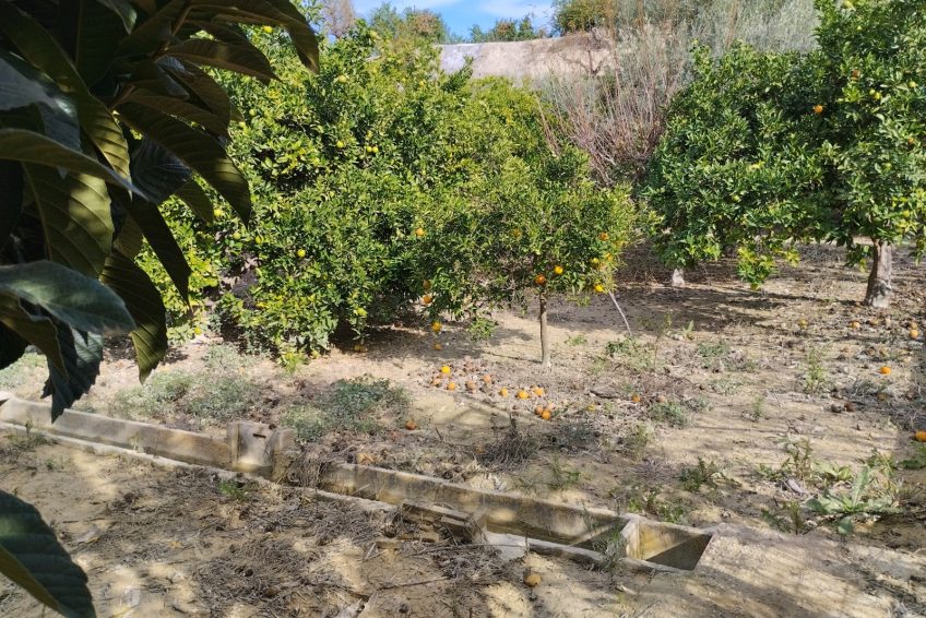 Parcela rústica en Ulea (Murcia) de 2 tahullas con huerto, que tiene naranjos, limoneros, ciruelos, higuera… Es lindero de balsa de riego por lo tanto no ha de pagar el agua del cual se sirve directamente de la balsa para el riego.