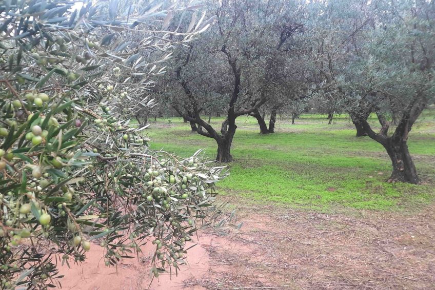 Dos fanegas están plantadas de olivo picual (320 olivos), una fanega de olivo arbequino en seto (420 olivos), y la fanega restante de árboles frutales (higueras) en la que se encuentran las diferentes edificaciones.