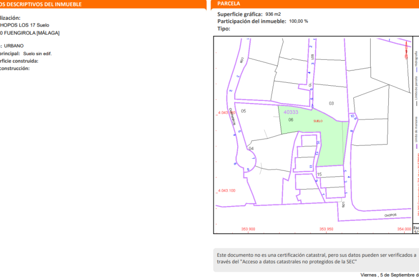 Parcela de terreno urbana procedente del Cortijo de Doña Barbara de Obregon, Urbanizacion El Castillo, Calle Los Chopos, hoy segun recibo de I.B.I. Calle Los Chopos, 17, en términos de Fuengirola