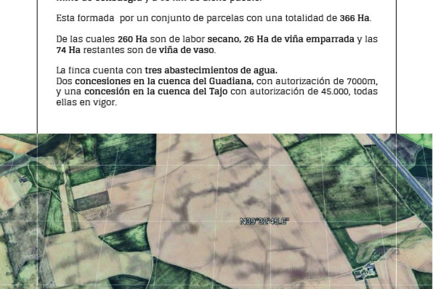Esta formada por un conjunto de parcelas con una totalidad de 366 Ha. De las cuales 260 Ha son de labor secano, 26 Ha de viña emparrada y las 74 Ha restantes son de viña de vaso. Todos ellos pertenecientes a la misma familia durante más de 100 años
